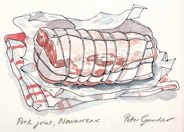 The Concierge that he and his wife Lindy let out to holidaymakers. It lies about 20mins walk from their home in Navarrenx. I painted under a roof overhanging a patio area to the soft drip, drip of the rain falling off the leaves. A blackbird was rustling through fallen leaves in the garden, apart from that, it was wonderfully quiet. We later ate the marrow with